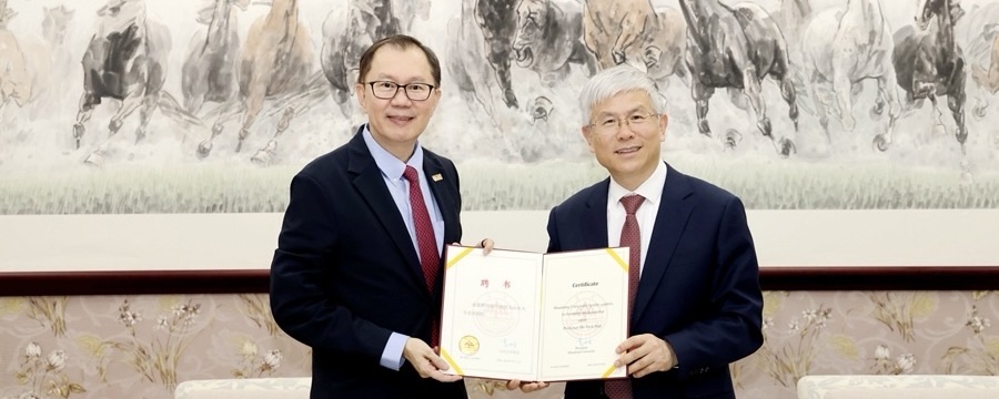 2026-044月18日,南洋理工大学校长何德华率团访问山东大学。校长李术才会见代表团,并为何德华颁授山东大学名誉...